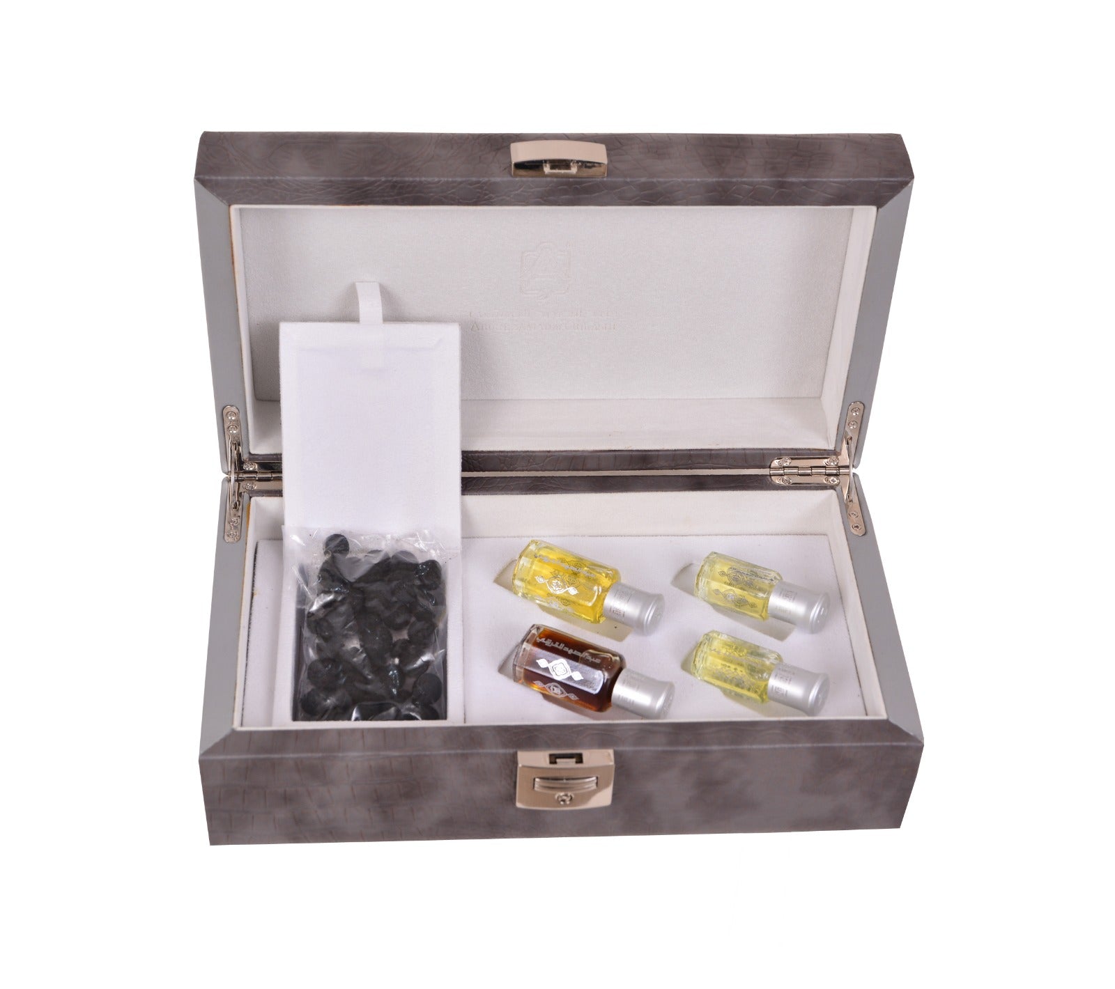 صندوق هدية فاخر يحتو على 4 عطور زيتية + معمول العود